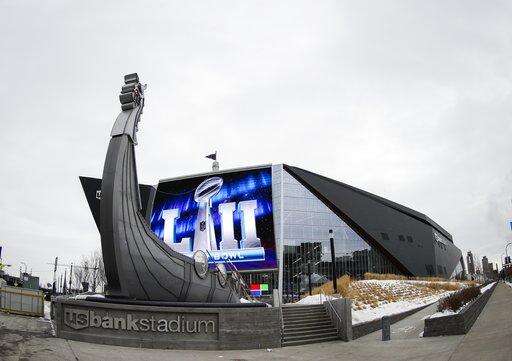 U.S. Bank Stadium is seen Tuesday, Jan. 30, 2018, in Minneapolis. The NFL Super Bowl 52 football game will be played Sunday, Feb. 4, 2018. (AP Photo/Matt Slocum) The Associated Press