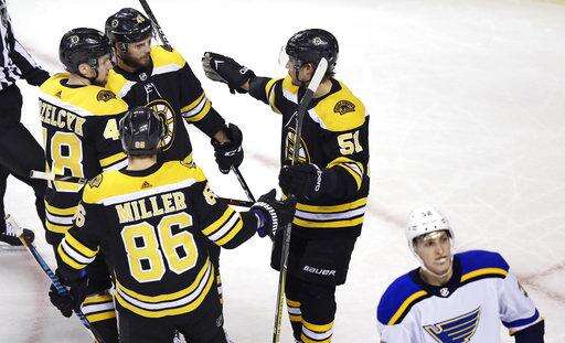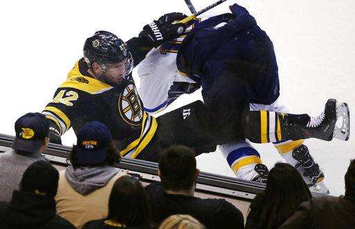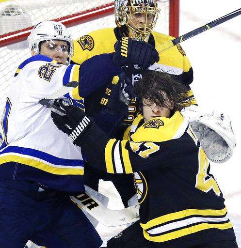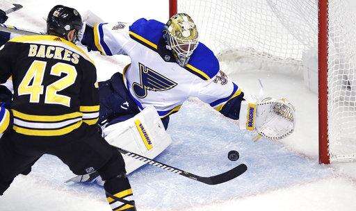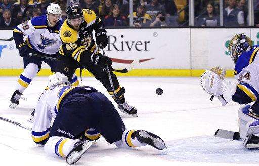 NOTES: Kevan Miller left in the second period with an upper-body injury. ... Spooner had two assists for the Bruins. ... Boston scored first for the first time in nine games. ... Allen was undefeated in four career starts against Boston and started for the first time in seven games. ... Brad Marchand served the third game of his five-game suspension. ... St. Louis is 3-5-1 in its last nine road games.