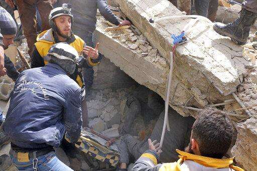 The White Helmets said airstrikes targeting the village of Termala in Idlib on Tuesday killed three people. It said one of its workers was also killed by an airstrike while responding to a call for rescue in the area.