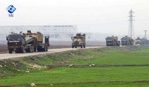 Turkey's military said a Turkish soldier was killed in an attack in Idlib, where the Turkish troops are establishing an observation post. The military said the soldier was killed late Monday by a mortar-and-rocket attack that also wounded five Turkish soldiers and a civilian military contractor.