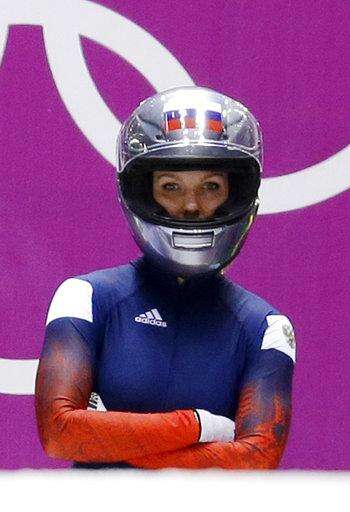 FILE - In this Feb. 18, 2014 file photo, Nadezhda Sergeeva, of Russia, prepares for the first run during the women's two-man bobsled competition at the 2014 Winter Olympics, in Krasnaya Polyana, Russia. Sergeeva’s bobsled training outfit says a lot about what life will be like for an “Olympic Athlete from Russia.” There is an old, anonymous black race suit with tape over several logos. Underneath, a white T-shirt with a simple message - “I Don’t Do Doping.” As punishment for doping offenses at the 2014 Sochi Games, the International Olympic Committee has forced Russian athletes competing in Pyeongchang to do so as OARs in neutral uniforms and with no national insignia. (AP Photo/Natacha Pisarenko, File) The Associated Press
