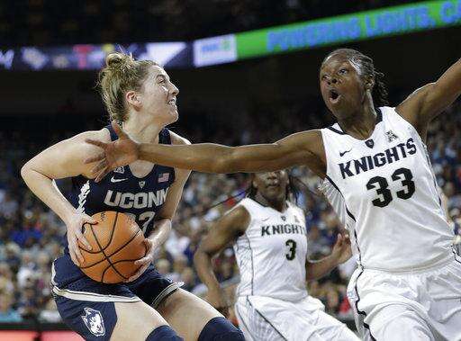 The Knights (16-8, 8-3) got 13 points from Zakiya Saunders and 12 from Korneila Wright, but never seriously challenged UConn, except in the fourth quarter.