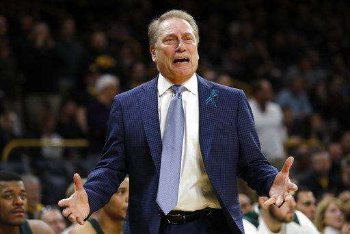 Michigan State coach Tom Izzo reacts to a call against his team during the second half of an NCAA college basketball game against Iowa, Tuesday, Feb. 6, 2018, in Iowa City, Iowa. Michigan State won 96-93. (AP Photo/Charlie Neibergall) The Associated Press
