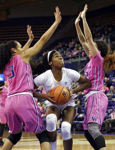 The latest example came Friday night when the Ducks overwhelmed undersized Washington for a 76-63 victory. Ruthy Hebard scored a career-high 30 points, including 14 in the third quarter, and the Ducks rebounded from last Sunday's home loss to No. 17 Stanford.