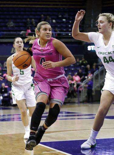 Washington (7-17, 1-12) lost its fifth straight and simply didn't have the size to counter Oregon in the paint. Amber Melgoza led the Huskies with 21 points and Mai-Loni Henson added 16.