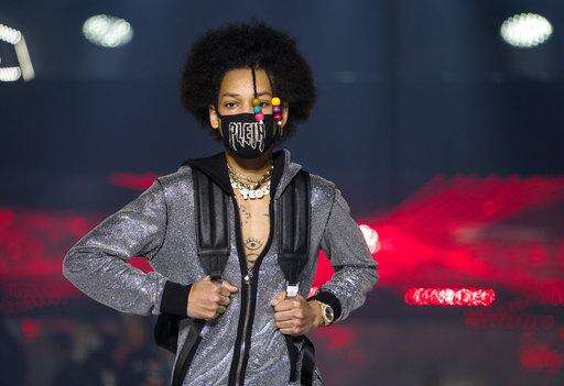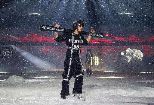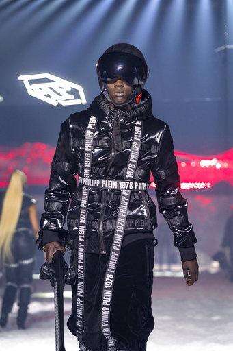 NEW YORK (AP) - Provocateur Philipp Plein descended on New York Fashion Week with a giant spaceship, silvery rock formations and Migos lighting up the crowd Saturday night as fake snow fell and covered the floor of a huge industrial space at the Brooklyn Navy Yard.