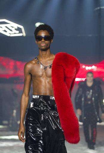 A model wears fashion from the Philipp Plein collection during Fashion Week in New York, Saturday, Feb. 10, 2018. (AP Photo/Craig Ruttle) The Associated Press