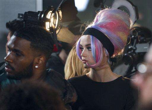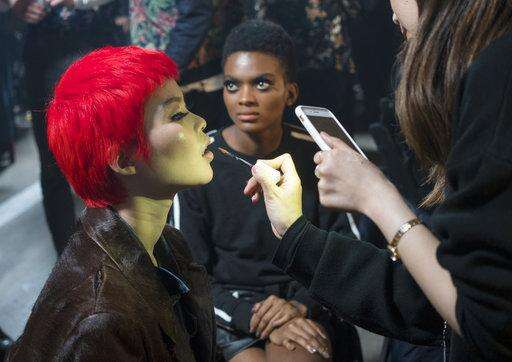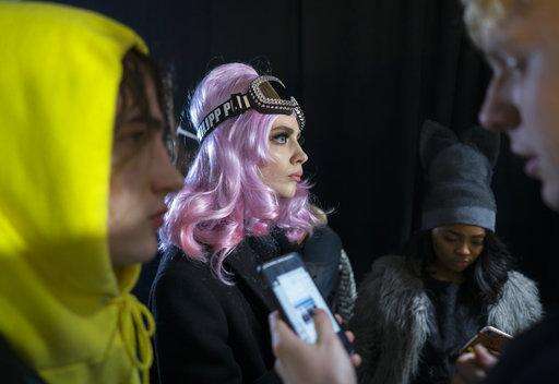 A model waits backstage before modeling fashions of the Philipp Plein collection during Fashion Week in New York, Saturday, Feb. 10, 2018. (AP Photo/Craig Ruttle) The Associated Press