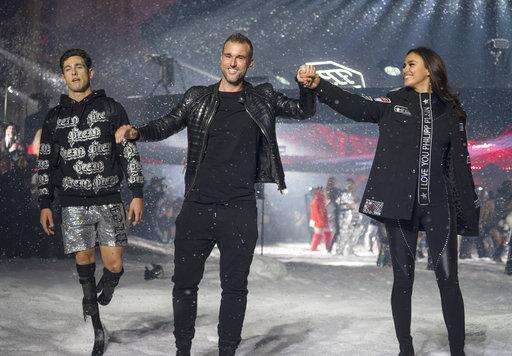 Designer Philipp Plein, center, greets attendees after the show featuring his collection during Fashion Week in New York, Saturday, Feb. 10, 2018. (AP Photo/Craig Ruttle) The Associated Press