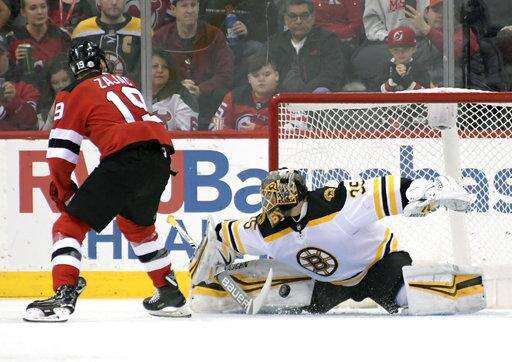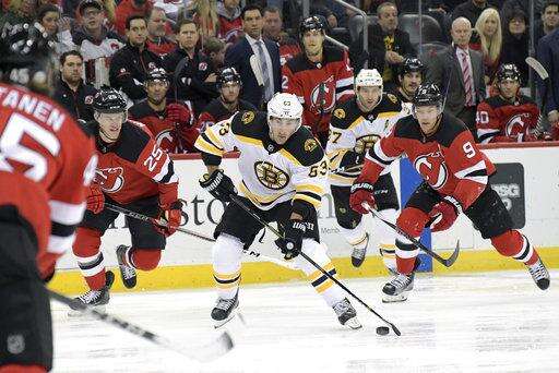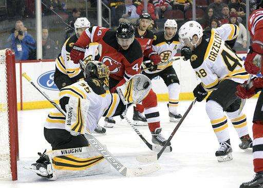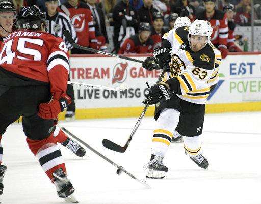 NOTES: Bruins RW Noel Acciari returned to the lineup after missing seven games with a lower-body injury. ... Devils D John Moore was a healthy scratch after playing in the opening 54 games. ... Bruins C Ryan Spooner got his 100th career assist on Krug's second goal. ... Boston is 16-5-4 on the road this season and 23-5-6 against Eastern Conference teams.