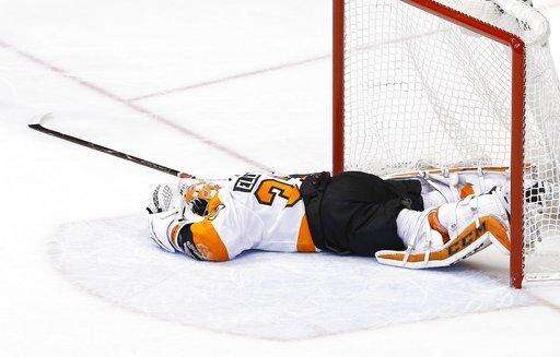 Flyers goalie Brian Elliott left the game after the second attempt of the tiebreaker when Arizona's Clayton Keller inadvertently hit Elliott near his face with his stick on the follow-through. Elliott was helped slowly off the ice, and the Flyers said he suffered a lower body injury despite where the contact was, with an update to come on Sunday.