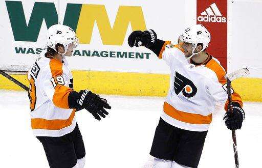 Philadelphia then scored twice to take the lead. The first came when Giroux got his 17th on a one-timer that zipped past Raanta on a power play at 10:19. Voracek got an assist on the goal, his NHL-leading 53rd of the season and the eighth straight game in which he has scored a point.