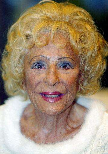 FILE - In tis file photo dated Saturday, Jan. 18, 2003, German filmmaker and photographer 100-year old Leni Riefenstahl is honored for her underwater-photography by the world's largest trade fair for boats and watersports "Boot Duesseldorf", in Duesseldorf, Germany. The German cultural foundation, Prussian Cultural Heritage Foundation, said Monday Feb. 12, 2018, that it has been bequeathed photos, films, manuscripts, letters and files from the estate of Leni Riefenstahl, the legendary filmmaker best known for the propaganda movies she made for Nazi Germany. (AP Photo/Martin Meissner, FILE)