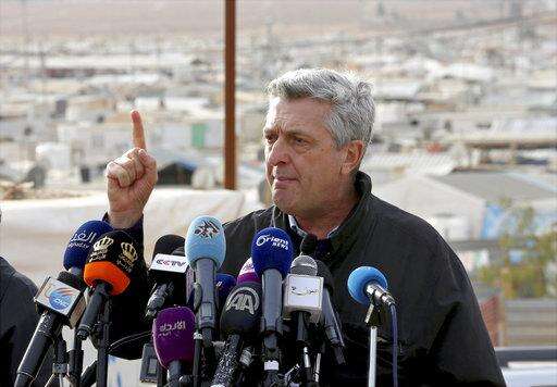 ZAATARI REFUGEE CAMP, Jordan (AP) - The head of the U.N. refugee agency on Monday appealed to the United States and other nations to take in more displaced people, speaking from a camp for Syrian refugees in Jordan, one of the main host countries.