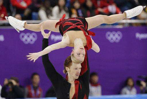 The only American pair, Alexa Scimeca-Knierim and Chris Knierim, struggled after helping the U.S. win team bronze. She over-rotated on their triple twist lift, he stepped out on their side-by-side triple salchow, and she put a hand down landing their throw triple flip.