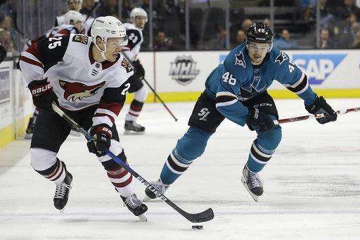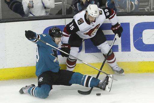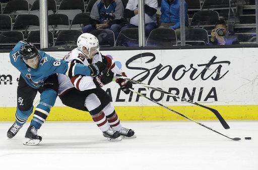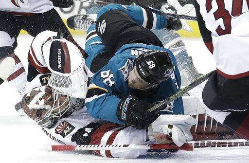 Coyotes: Coyotes goalie Scott Wedgewood left the game early in the third period after a collision with Timo Meier. Coyotes coach Rick Tocchet said the inury isn't serious. Antti Raanta, the regular starter on an off day off after a 37-save game in Monday's 6-1 victory over the Chicago Blackhawks, finished the game for Arizona. Wedgewood had 29 saves and Raanta had 12.