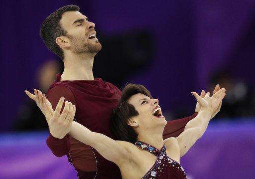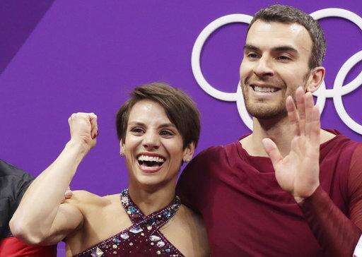 Meagan Duhamel and Eric Radford of Canada react after their performance in the pairs free skate figure skating final in the Gangneung Ice Arena at the 2018 Winter Olympics in Gangneung, South Korea, Thursday, Feb. 15, 2018. (AP Photo/Bernat Armangue) The Associated Press