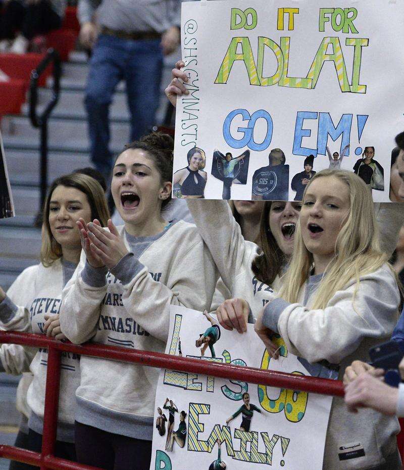 "I was practicing a lot in the back gym," said Hallin, for whom balance beam was the only event. "I was just listening to music and pumping myself up. It was kind of long, since we were here since 10 this morning (until around 5 p.m.)."