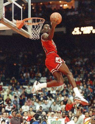 FILE - In this Feb. 6, 1988, file photo, Chicago Bulls' Michael Jordan dunks the ball during the Slam-Dunk championship in Chicago, as a part of the NBA All-Star weekend. By the 1980s, America finally publicly embraced the black athlete, looking past skin color to see athleticism and skill, rewarding stars with multimillion-dollar athletic contracts, movie deals, lucrative shoe endorsements and mansions in all-white enclaves. Who didn’t want to be like Mike? (AP Photo/John Swart, File) The Associated Press