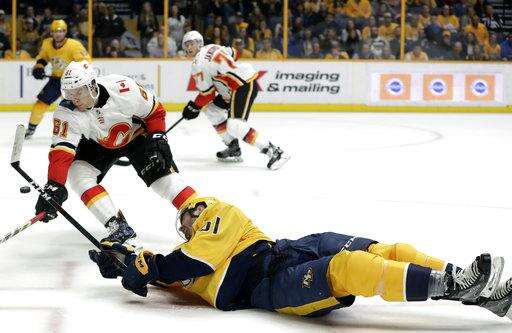 Notes: Nashville C Kyle Turris missed the game due to illness. ... The Predators were 0 for 5 on the power play. They have not scored on the man-advantage in their last six games, going 0 for 18. ... Gaudreau extended his points streak to eight games. ... The road team has won all three games in the season series, with Calgary taking both matchups in Nashville.