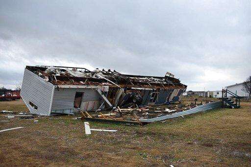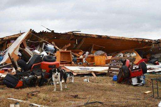 A mobile home is seen destroyed after a tornado struck an area outside Joshua, about 20 miles (32 kilometers) south of Fort Worth, Texas, Tuesday, Feb. 20, 2018. Two weak tornadoes have hit North Texas, demolishing at least one mobile home and damaging about a dozen others in the rural area near Joshua and damaging the roofs of homes in the Dallas suburb of DeSoto. (Jessica Pounds/Cleburne Times-Review via AP) The Associated Press