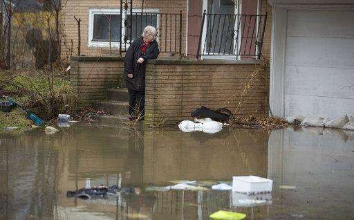 Debbie Steinbach looks around her home to assess water damage in South Bend, Ind., Tuesday, Feb. 20, 2018. A storm system stretched from Texas to the Great Lakes states and forced some schools to close. The National Weather Service issued winter weather advisories for parts of Oklahoma, Kansas, North Dakota, Missouri, Iowa, Minnesota and Wisconsin. Flood warnings were in effect in Illinois, Indiana and Michigan with flood watches in Texas and Arkansas. (Santiago Flores/South Bend Tribune via AP) The Associated Press