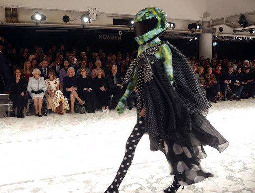 LONDON (AP) - Queen Elizabeth II has always dressed with style and flair - but Tuesday marked her first visit to the showy catwalks of London Fashion Week.