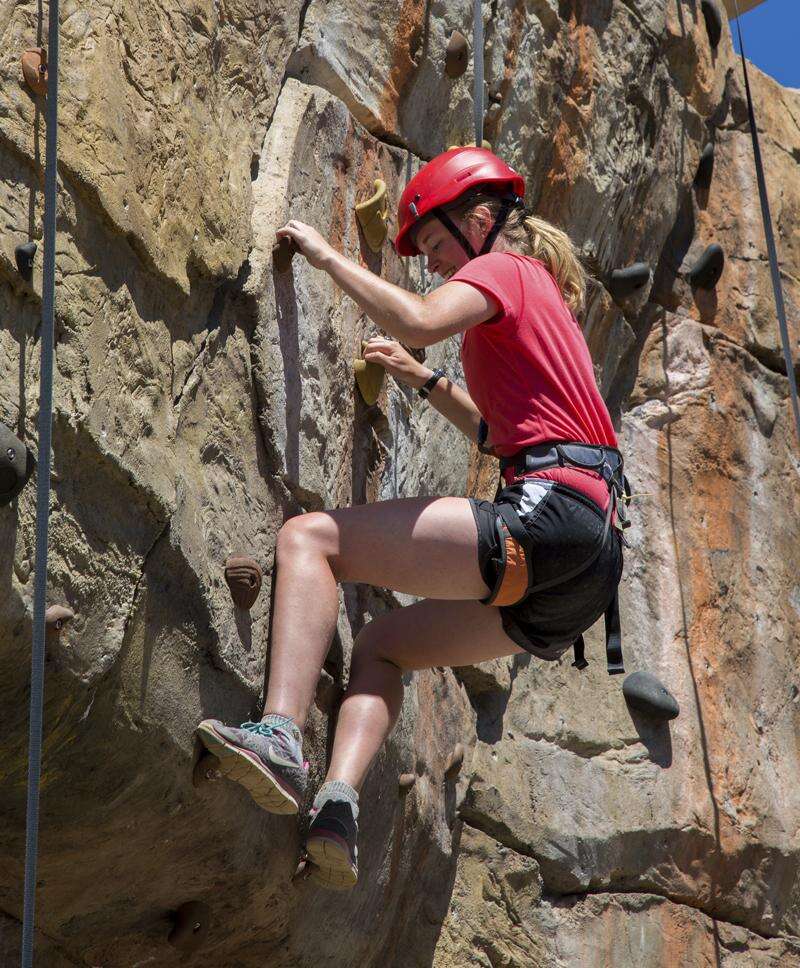 A Venture Scout scales one of the rock walls during her crew's adventure at the Summit Bechtel Reserve near Glen Jean, West Virginia. Boy Scouts of America via AP