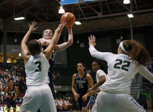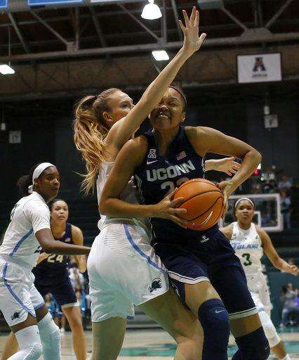 UConn: When they played at Tulane last season, the Huskies had to sweat out a 63-60 victory, preserving what was at the time a 101-game winning streak that eventually ended at 111. UConn appeared mindful of that too-close-for-comfort result this time around in a victory that never appeared in doubt. The Huskies have now won 154 straight against unranked opponents, including 117 straight against such competition on the road.