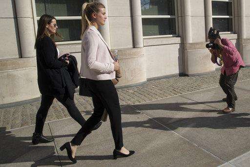 Tennis star Eugenie Bouchard leaves Brooklyn Federal court, Wednesday, Feb. 21, 2018, in New York. Bouchard testified during her negligence lawsuit against the United States Tennis Association that a wet floor caused her to slip and fall inside a locker room at the 2015 U.S. Open. (AP Photo/Mary Altaffer) The Associated Press