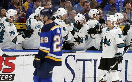 NOTES: The Sharks acquired C Eric Fehr from Toronto for a seventh-round pick in the 2020 draft. ... Blues C Vladimir Sobotka was out of the lineup with an illness. It was the first game he has missed this season. ... The Blues have recalled forward Sammy Blais from the AHL for the fourth time this season. Blais, who leads the San Antonio Rampage with 28 points (11 goals, 17 assists), last played for St. Louis on Dec. 16, when he got hurt against Winnipeg. ... San Jose forward Tomas Hertl missed another game with an upper-body injury.