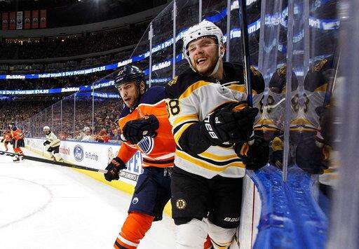 Krejci snaps tie late in 3rd, Bruins rally past Oilers 3-2