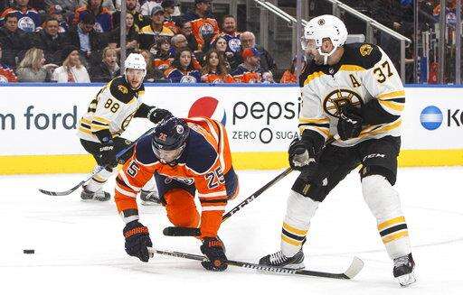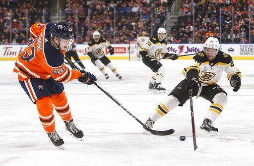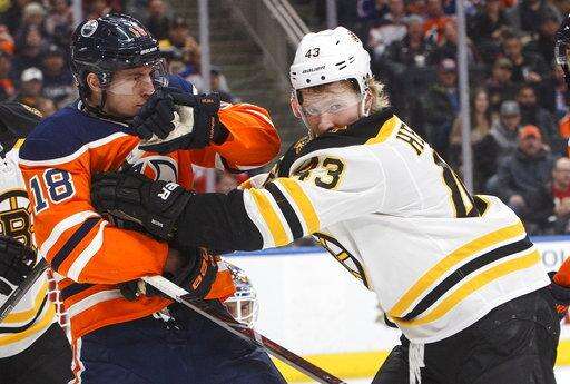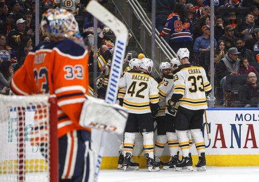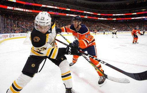 NOTES: It was the second and final meeting this season between the teams. The Oilers took the first game 4-2 in Boston on Nov. 26. ... Oilers defenseman Kris Russell played his 700th NHL game. ... The Bruins acquired D Nick Holden from the New York Rangers for minor league defenseman Rob O'Gara and their third-round pick in this year's draft. Holden was not in Edmonton in time for the game.