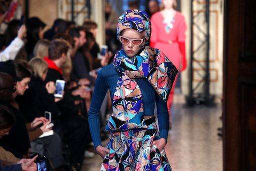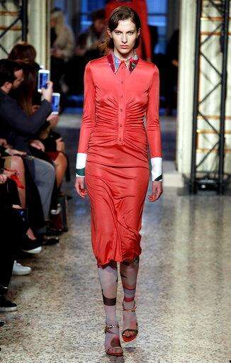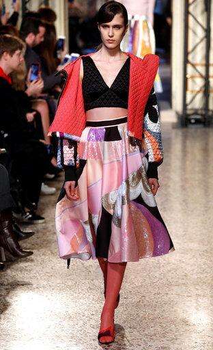 A model wears a creation part of the Emilio Pucci women's Fall/Winter 2018-2019 collection, presented during the Milan Fashion Week, in Milan, Italy, Thursday, Feb. 22, 2018.(Matteo Bazzi/ ANSA via AP) The Associated Press