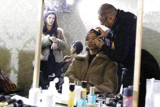A model is made up prior to the Emilio Pucci women's Fall/Winter 2018-2019 collection, presented during the Milan Fashion Week, in Milan, Italy, Thursday, Feb. 22, 2018. (AP Photo/Antonio Calanni) The Associated Press
