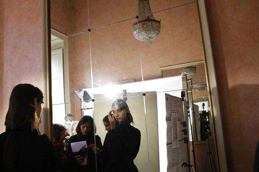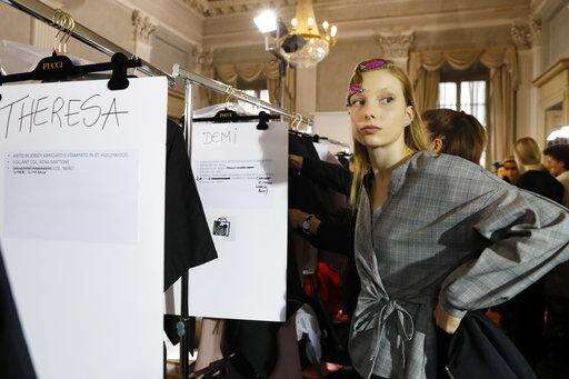 A model waits backstage prior to the Emilio Pucci women's Fall/Winter 2018-2019 collection, presented during the Milan Fashion Week, in Milan, Italy, Thursday, Feb. 22, 2018. (AP Photo/Antonio Calanni) The Associated Press
