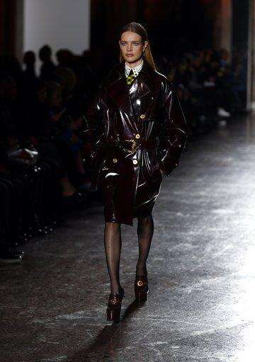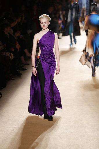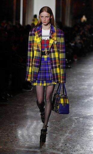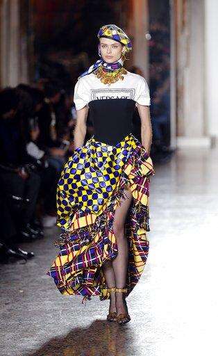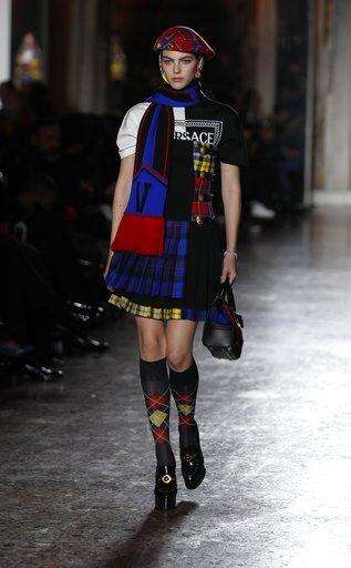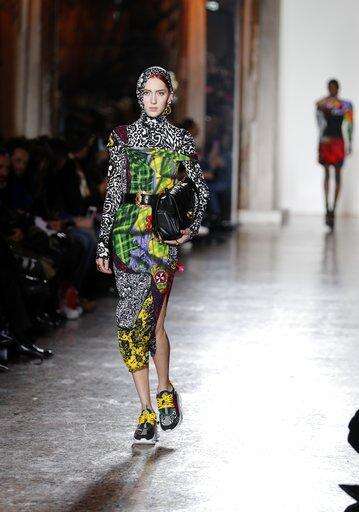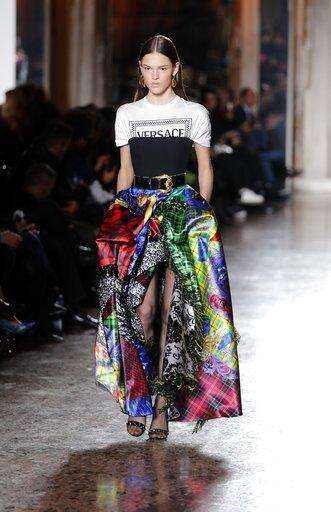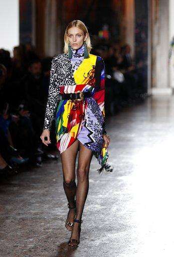 A model wears a creation as part of the Versace women's Fall/Winter 2018-2019 collection, presented during the Milan Fashion Week, in Milan, Italy, Friday, Feb. 23, 2018. (AP Photo/Antonio Calanni)