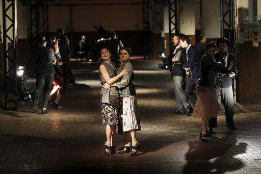 Dancers perform at the Antonio Marras women's Fall/Winter 2018-2019 collection, presented during the Milan Fashion Week, in Milan, Italy, Friday, Feb. 23, 2018. (AP Photo/Antonio Calanni)