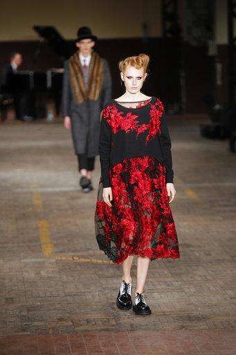 The runway mood ranged from romantic rose prints on black backgrounds to New World plaids, old-time Varsity jackets and sweaters worn over lace and tulle skirts, and finally to fun night-out wear.
