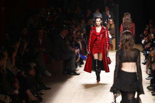 Model Bella Hadid wears a creation as part of the Roberto Cavalli women's Fall/Winter 2018-2019 collection, presented during the Milan Fashion Week, in Milan, Italy, Friday, Feb. 23, 2018. (AP Photo/Antonio Calanni)