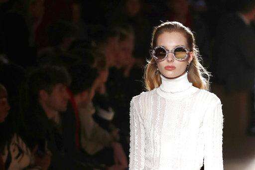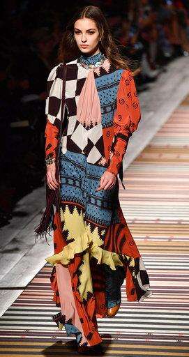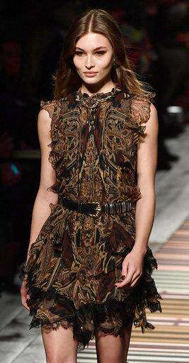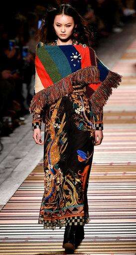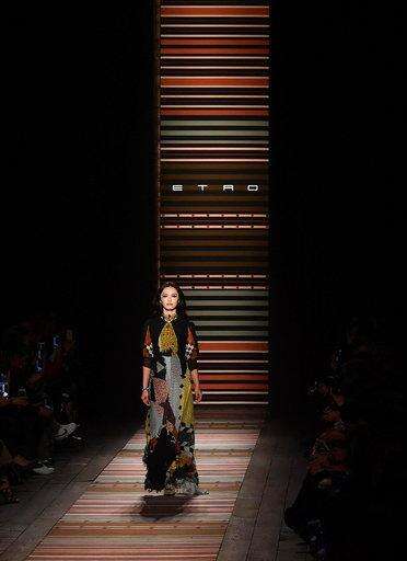 A model wears a creation as part of the Etro women's Fall/Winter 2018-2019 collection, presented during the Milan Fashion Week, in Milan, Italy, Friday, Feb. 23, 2018. (Daniel Dal Zennaro/ANSA via AP)