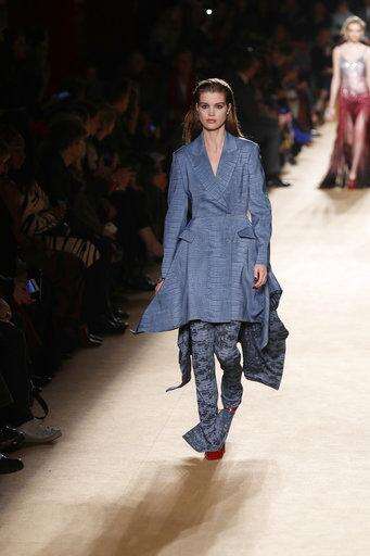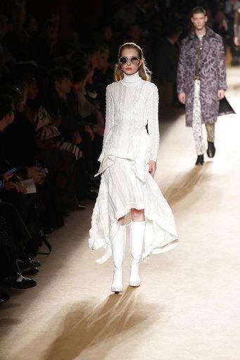 A model wears a creation as part of the Antonio Marras women's Fall/Winter 2018-2019 collection, presented during the Milan Fashion Week, in Milan, Italy, Friday, Feb. 23, 2018. (AP Photo/Antonio Calanni)