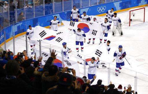 They joined thousands of others at a women's hockey game, waving their unified Korean flags - white rectangles with the light-blue silhouette of the Korean Peninsula, the North and South together.