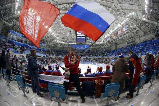 Fans at a Russian women's hockey game mocked the designation by waving flags, with "Olympic Fan from Russia" scrawled across its white, blue and red bars.