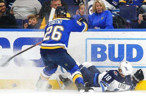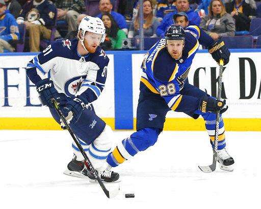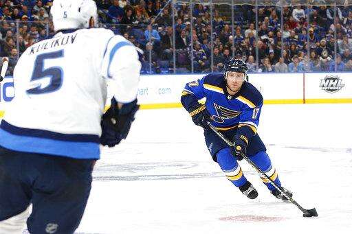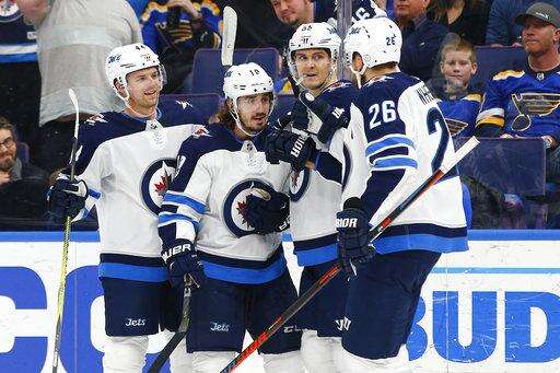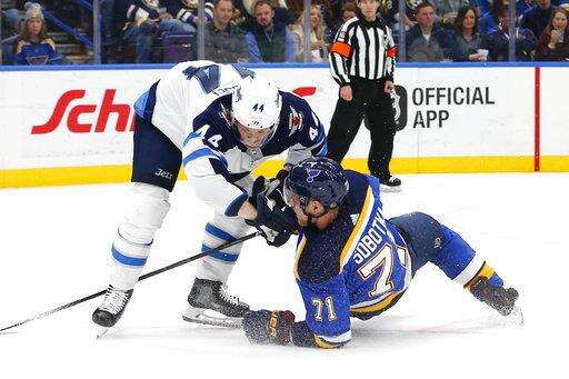 NOTES: The Blues placed D Robert Bortuzzo (left knee) on injured reserve. . Jets G Michael Hutchinson backed up Hellebuyck after missing the last six games due to a concussion. ... The Blues scratched L Sammy Blais and C Oskar Sundqvist. The Jets scrstched D Tucker Poolman and G Marko Dano.