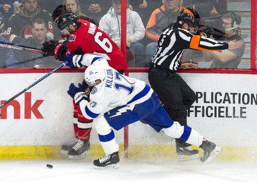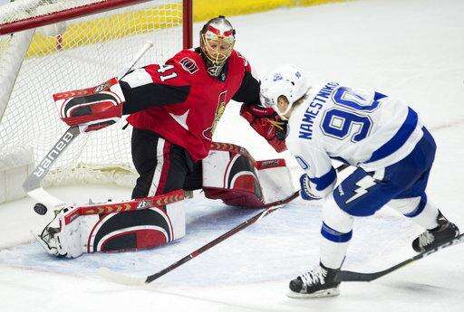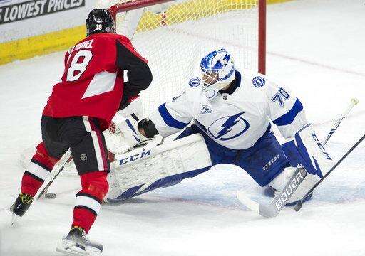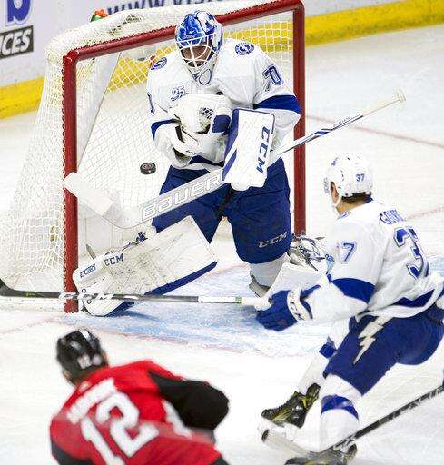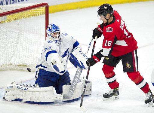 NOTES: LW Max McCormick and D Fredrik Claesson were healthy scratches for the Senators. ... Tampa Bay D Andrej Sustr and C Cory Conacher were healthy scratches.