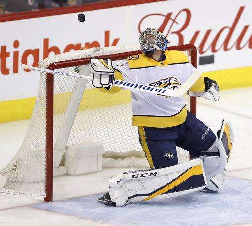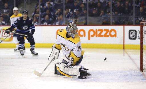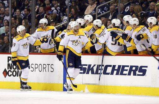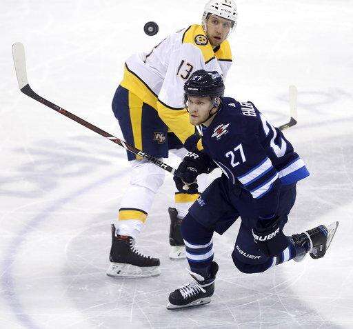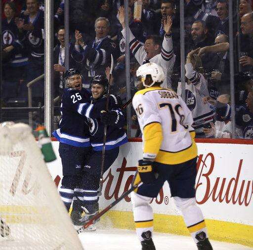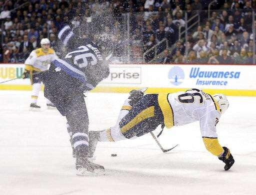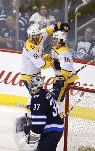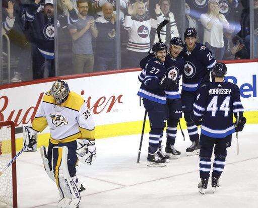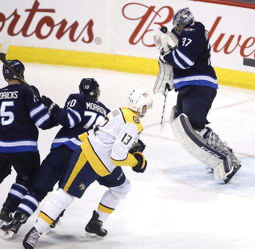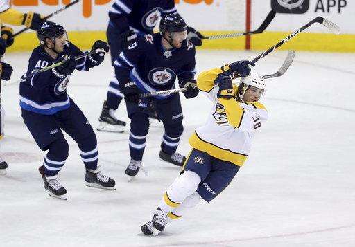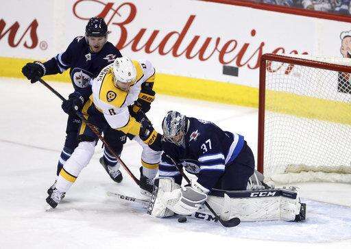 NOTES: Viktor Arvidsson had two assists for the Predators. ... Laine got assists on the goals by Stastny and Ehlers, pushing his point streak to six games. ... Stastny won 14 of 19 faceoffs. "He's a cagey guy," Scheifele said. "He knows the areas to go to to create offense, and in the (defensive) zone the areas to be." ... Jets defenseman Joe Morrow, just acquired from Montreal, was on the ice after veteran Toby Enstrom was scratched.