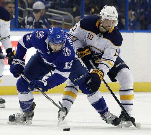 NOTES: The U.S. women's Olympic champion hockey team was honored before the game. The team held residency camp in nearby Wesley Chapel. ... Buffalo RW Kyle Okposo missed the game to be with his wife while she gave birth to a daughter Tuesday. Okposo is expected to join the team in time for Friday's game at Florida. ... The Sabres called up C Seth Griffin from Rochester of the American Hockey League. ... Tampa Bay recalled RW Michael Bournival from Syracuse of the AHL. ... Tampa Bay's streak of scoring at least three goals in a game was snapped at 10.