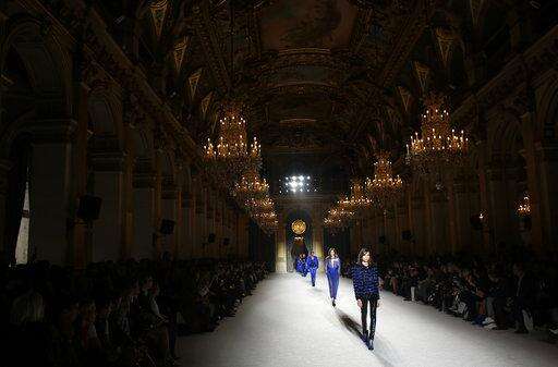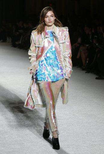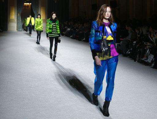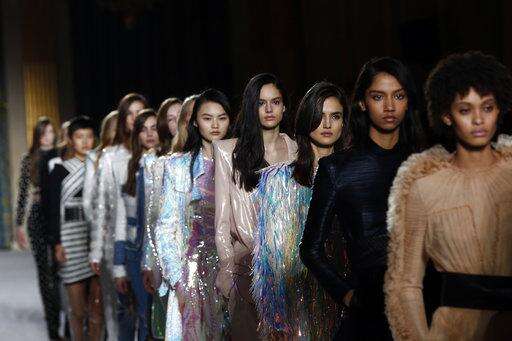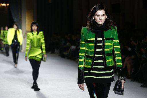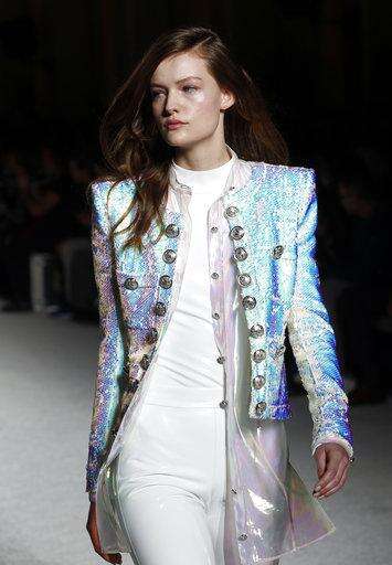 Models wear creations for Balmain's ready-to-wear fall-winter 2018/2019 fashion collection presented in Paris, Friday, March 2, 2018. (AP Photo/Thibault Camus)