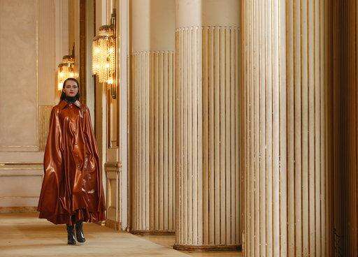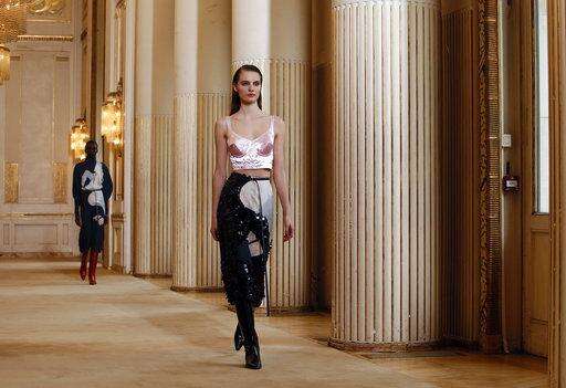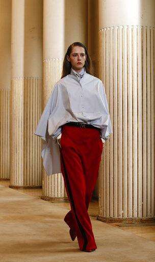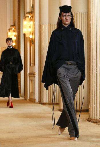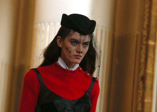 A model wears a creation for Nina Ricci's ready-to-wear fall-winter 2018/2019 fashion collection presented in Paris, Friday, March 2, 2018. (AP Photo/Kamil Zihnioglu)